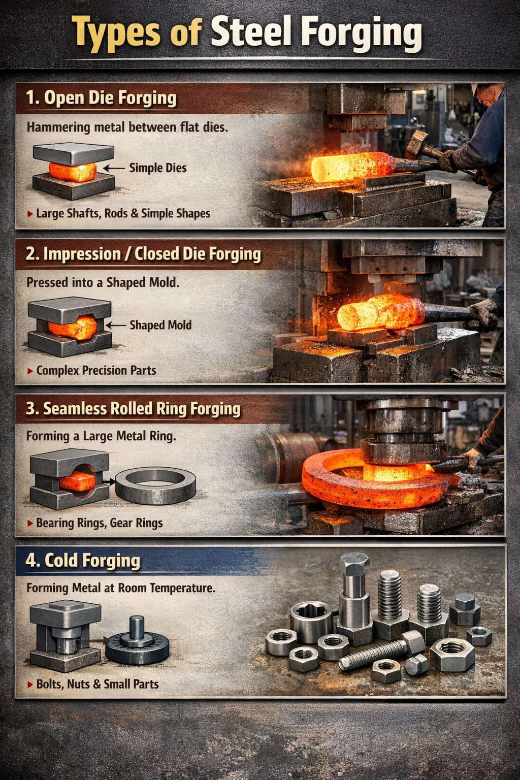 In the field of metal processing, there are many different forging processes. According to the most common classification method, steel forging can usually be divided into the following four categories:
