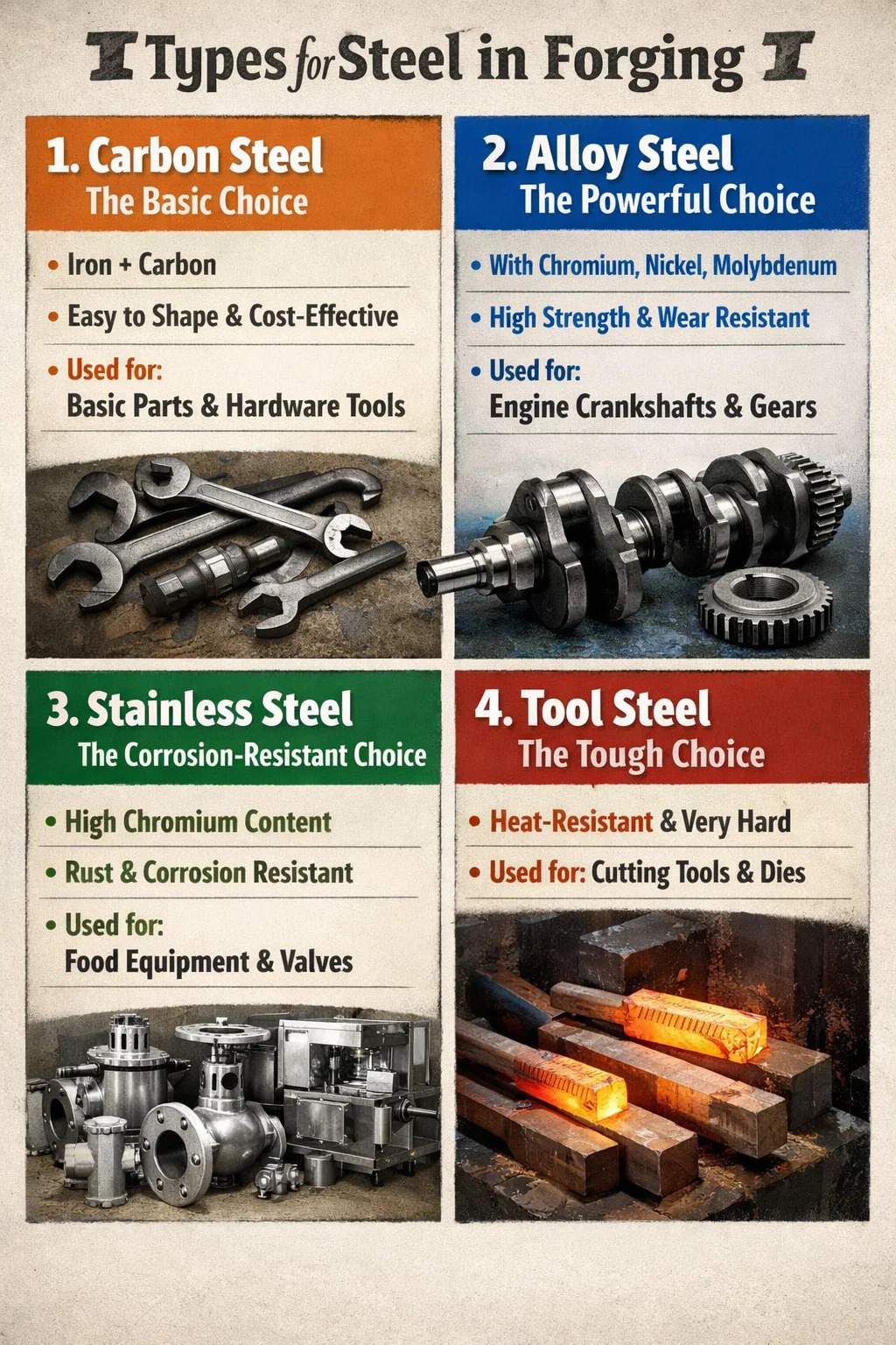 In actual industrial production, not all steel is suitable for "heating and hammering." To ensure that the resulting parts are both strong and durable, steel forging typically uses the following mainstream types of steel, depending on the application: